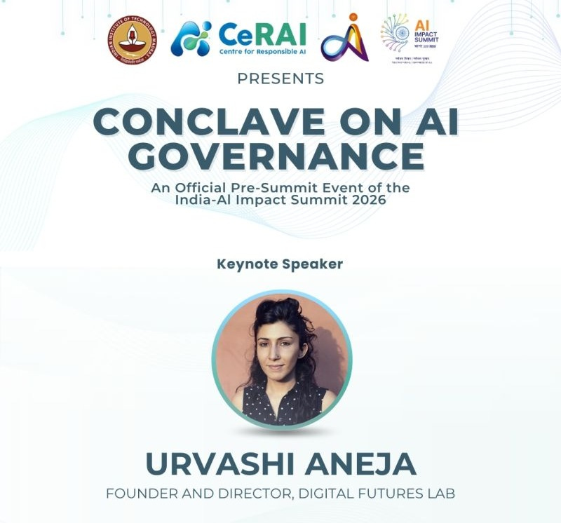 Founder & Executive Director, Urvashi Aneja, was a Keynote Speaker at the Conclave on AI Governance, an official Pre-Summit event for the upcoming India-AI Impact Summit 2026. The conclave brought together global experts, policymakers, and researchers to discuss how AI can be made safe, fair, and inclusive, especially for the Global South. It was hosted by the IIT, Madras’ Wadhwani School of Data Science and AI through its Centre for Responsible AI (CeRAI). Urvashi joined other experts and leaders, Mr Abhishek Singh (IndiaAI Mission and MeitY), Prof. Kamakoti Veezhinathan (IIT, Madras), Prof. Srinivasan Parthasarathy (Ohio State University), and Prof. Venkatram Ramaswamy (University of Michigan) as a Keynote Speaker.